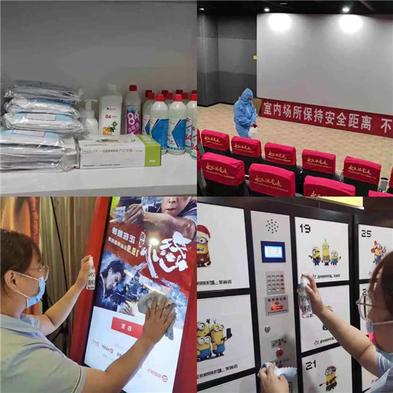 目前,各影城內(nèi)均配備了體溫槍、酒精、防護口罩、凝膠式消毒液、二氧化氯消毒劑、84消毒液、防護服、護目眼鏡等疫情防控物品。在影城營業(yè)期間,將嚴(yán)格落實測溫及消殺工作,并做好人流管控及場間消殺及通風(fēng)工作,杜絕一切安全隱患,確保防疫萬無一失。
