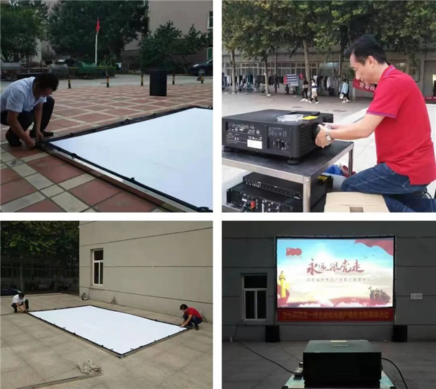河北影視集團中聯(lián)院線為了執(zhí)行好“永遠(yuǎn)跟黨走”—河北省優(yōu)秀國產(chǎn)電影主題展映活動,9月30日至10月2日期間,專門派出流動放映隊,分別到石家莊銀都花園社區(qū)、河北體育學(xué)院學(xué)府校區(qū)、衡水湖服務(wù)區(qū)、饒陽饒邑古城西門,邢臺市趙牌村、雄安新區(qū)等地,為當(dāng)?shù)厝罕姟W(xué)生放映了《我和我的祖國》《地雷戰(zhàn)》《中國藍盔》《決勝時刻》《紅星照耀中國》《拆彈專家2》《幸福馬上來》《一點就到家》等國產(chǎn)優(yōu)秀主旋律影片。
