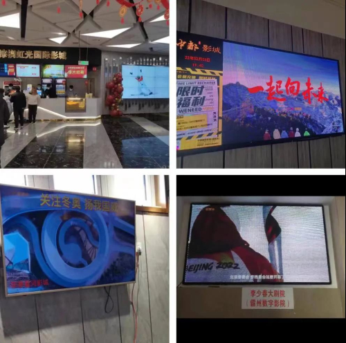 今天,河北影視集團(tuán)中聯(lián)院線為了喜迎冬奧開幕,專門向旗下各影城下發(fā)了冬奧會(huì)最新宣傳片,要求各影城利用影院大屏幕、顯示屏及廣告屏等進(jìn)行陣地播放,做好冬奧會(huì)主題宣傳工作,為冬奧營造濃厚熱烈的氛圍。