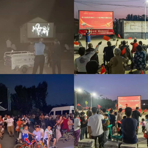 近期,由河北省委宣傳部、河北省電影局主辦,河北影視集團(tuán)承辦,河北影視集團(tuán)中聯(lián)影業(yè)院線具體執(zhí)行的“奮進(jìn)新征程 建功新時(shí)代”——河北省迎慶黨的二十大優(yōu)秀影片展映活動(dòng),在嚴(yán)格落實(shí)疫情防控措施的前提下,先后在保定市安新寨里鄉(xiāng)楊孟莊村、東馬村、大北頭村,張家口市沽源縣西辛營(yíng)鄉(xiāng)建設(shè)村、橋東區(qū)東望山鄉(xiāng)果子溝村,滄州市新港村、薛莊子村,邢臺(tái)市中共張街村支部委員會(huì)、閆圈村、寧晉縣高竄村村委會(huì),唐山市遵化市新店子鎮(zhèn)王迷寨村、井框峪村、團(tuán)瓢莊鄉(xiāng)宋各莊村,秦皇島市甘各莊村、太平莊村、張橋莊村、姚周寨村、劉莊村、小旺莊村,衡水市駕莊村大戲臺(tái)等地,為當(dāng)?shù)厝罕婇_(kāi)展了流動(dòng)放映。