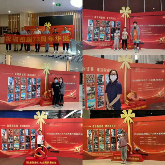 河北影視集團中聯(lián)院線為了執(zhí)行好由河北省委宣傳部、河北省電影局主辦,河北影視集團承辦的“奮進新征程 建功新時代”——河北省迎慶黨的二十大優(yōu)秀影片展映活動,國慶前夕,專門在旗下多家影院布置了影城陣地宣傳打卡地,在迎接黨的二十大勝利召開的同時,為國慶節(jié)營造熱烈、莊重、喜慶的節(jié)日氛圍。