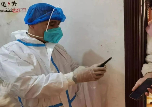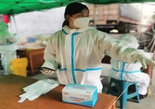 中聯(lián)院線直營(yíng)影城石家莊市金棕櫚澳怡影城員工祖連文,疫情期間在裕華區(qū)大馬莊園,配合社區(qū)進(jìn)行核酸檢測(cè)及居民日常生活保障工作。