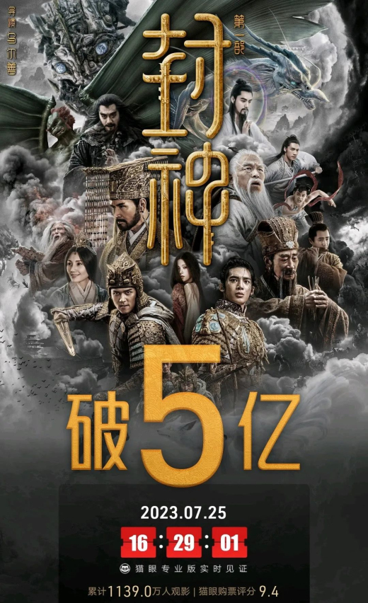 《封神第一部》投資巨大,故事情節(jié)緊湊,場景宏大,制作精良,視覺效果非常出色,無論是法術(shù)特技還是戰(zhàn)斗場景,都讓觀眾眼前一亮。片中角色形象鮮明,人物性格飽滿,演員們的表演也非常精彩。除了《封神第一部》,今年暑期檔內(nèi)還涌現(xiàn)了《消失的她》《八角籠中》《長安三萬里》《變形金剛:超能勇士崛起》等一批爆款影片,助力暑期檔票房繼2019年后重回百億元時代,刷新了中國影史暑期檔最快破百億時間紀(jì)錄,今年暑期檔票房已破113.43億元。
