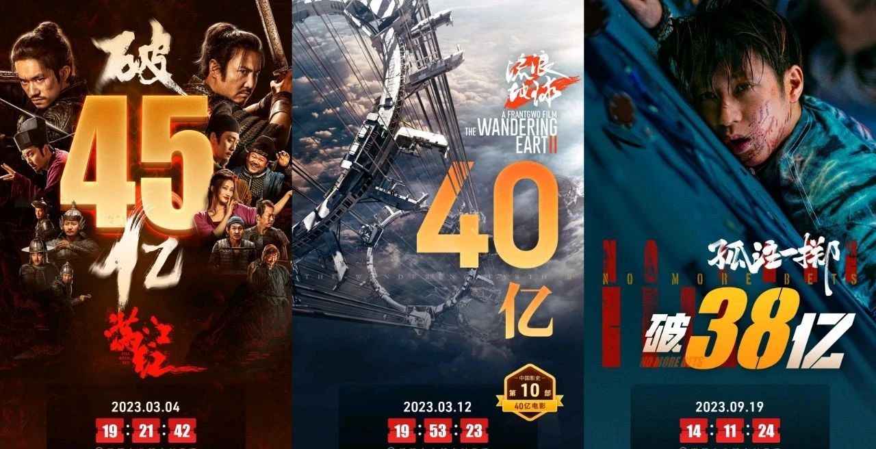 位列票房榜前十名的影片均為國產(chǎn)電影,且票房都超過了10億元。其中,影片《滿江紅》票房超45.4億元,位居榜首,票房占比9%。影片《流浪地球2》以40.2億元的票房成績緊隨其后,票房占比8%。排名第三的影片《孤注一擲》票房達(dá)38.4億元,票房占比7.6%。目前,這三部影片票房之和占年度總票房的四分之一。