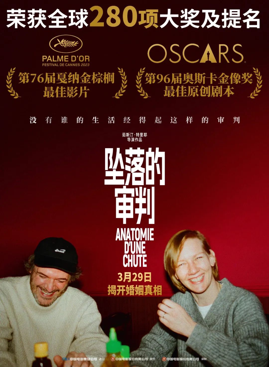 《墜落的審判》在全球各大電影節(jié)及專(zhuān)業(yè)頒獎(jiǎng)典禮成績(jī)亮眼,榮獲包括第76屆戛納國(guó)際電影節(jié)金棕櫚最佳影片在內(nèi)的全球280項(xiàng)專(zhuān)業(yè)電影大獎(jiǎng)及提名,將于3月29日全國(guó)上映,觀(guān)眾將通過(guò)客觀(guān)真實(shí)的鏡頭和演員精湛的表演,走入這個(gè)關(guān)于兩性情感與人性的故事。