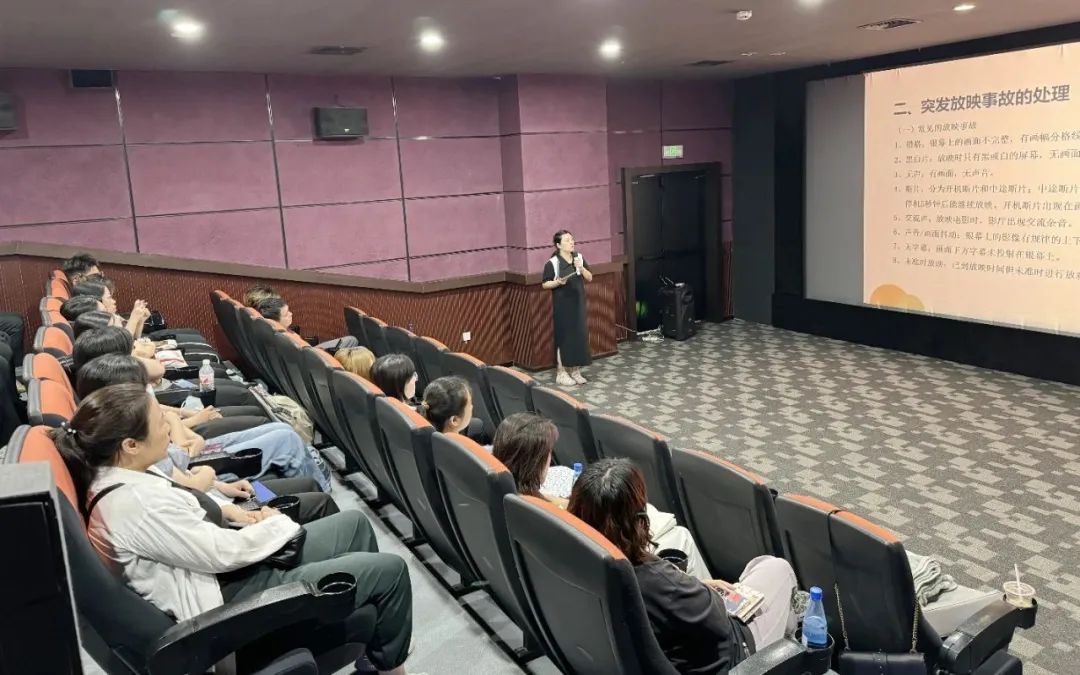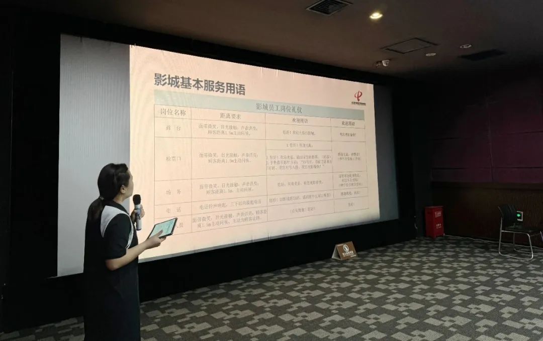 本次培訓(xùn)內(nèi)容主要包括影城服務(wù)禮儀基本知識、儀容儀表的規(guī)范、基本服務(wù)用語及接待、影城突發(fā)事件處理和常見問題應(yīng)答話術(shù)等,現(xiàn)場講解了影城日常運營服務(wù)中可能遇到的相關(guān)實際問題,并進(jìn)行了交流和探討。