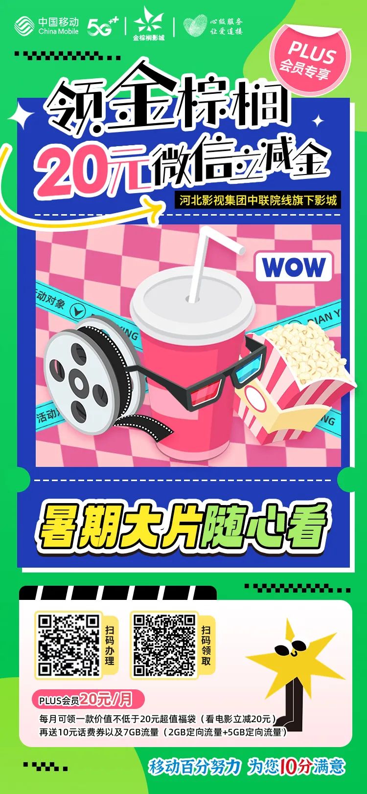 暑期大片隨心看 移動(dòng)PLUS會(huì)員立領(lǐng)20元微信立減金