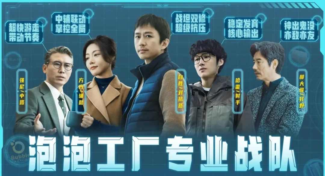 電影將故事背景設(shè)置在職場,上演了一場水泥森林里的“超·現(xiàn)實(shí)”內(nèi)斗游戲。元老級(jí)員工慘遭暴力裁員,為贏回屬于自己的800萬重回公司,組隊(duì)逆襲!叢林法則,步步為營,靜待解鎖最后贏家。白勝將組建的新公司命名為“泡泡工廠”,導(dǎo)演劉循子墨為其賦予了獨(dú)特含義:“泡泡工廠”仿佛飄浮在沉重的“奧傳司”之上,自帶浪漫氣息。它既是白勝對(duì)自己行為的自嘲——無奈之下編造的謊言,同時(shí)也包含著白勝對(duì)前途的憧憬——泡泡被戳破后會(huì)變成什么樣子?成員們懷揣不同目的聚集在一起,但隨著時(shí)間推移,團(tuán)魂逐漸凝聚,他們決定一起拼一把!