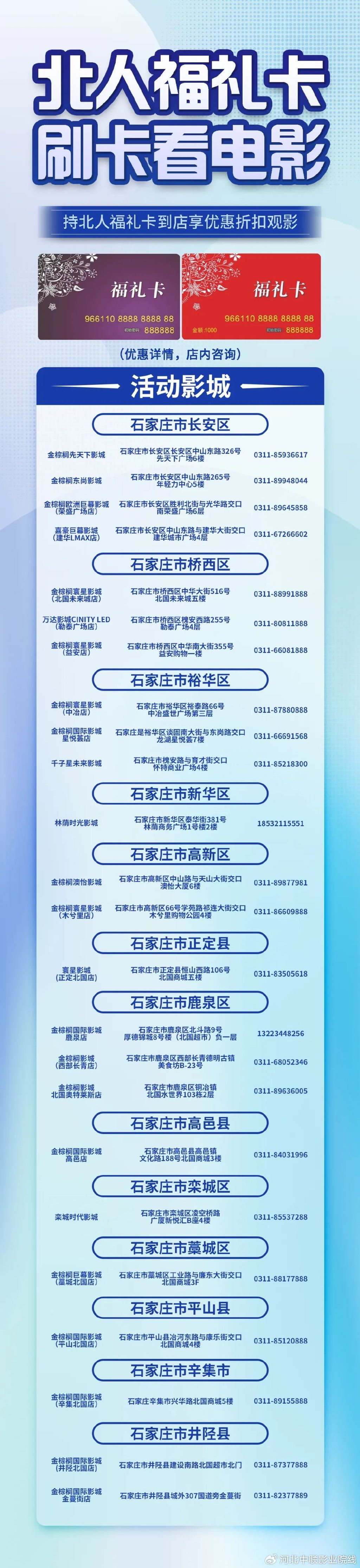 日前,河北影視集團(tuán)中聯(lián)院線與河北北人冀通支付服務(wù)有限公司達(dá)成合作,觀眾持北人福禮卡前往指定影城可享優(yōu)惠觀影。
