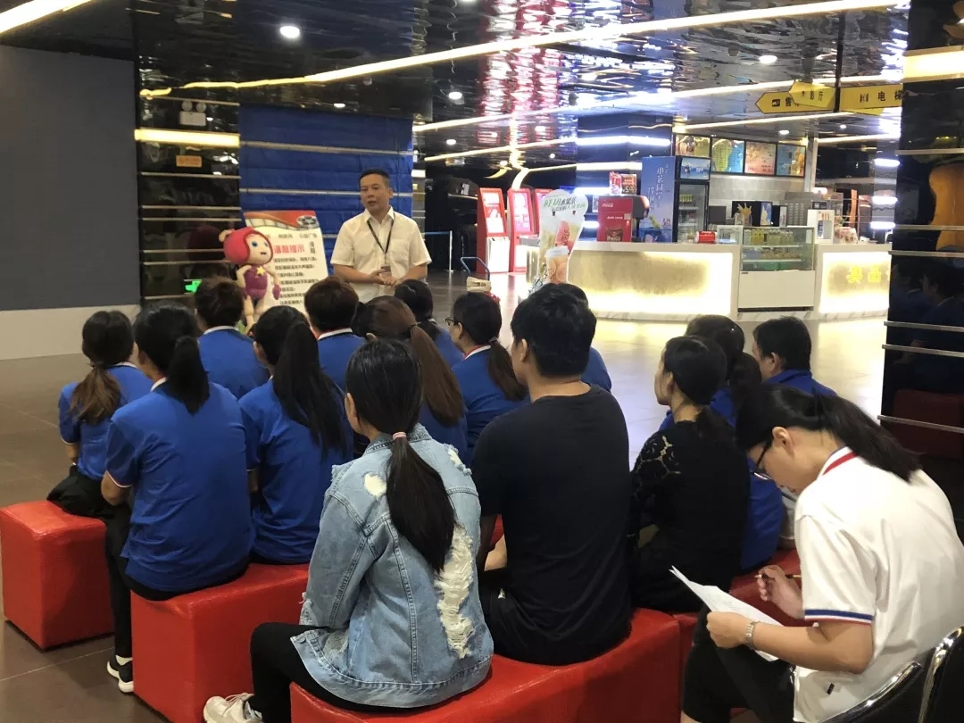 活動開始,影城員工認真觀看《火災(zāi)案例警示片》