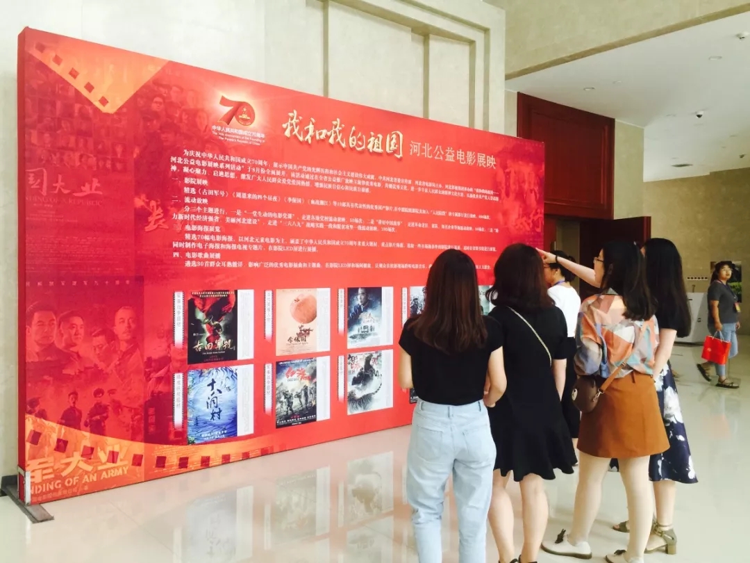 “我和我的祖國(guó)”河北公益電影展映系列活動(dòng),是為慶祝中華人民共和國(guó)成立70周年,由中共河北省委宣傳部、省電影局主辦,河北影視集團(tuán)有限公司承辦,河北影視集團(tuán)中聯(lián)影業(yè)院線公司執(zhí)行的大型公益電影放映活動(dòng)。系列活動(dòng)分為影院展映、流動(dòng)放映、電影海報(bào)展覽、電影歌曲展播四項(xiàng)內(nèi)容,活動(dòng)范圍覆蓋全省,公益電影總場(chǎng)次800場(chǎng)。